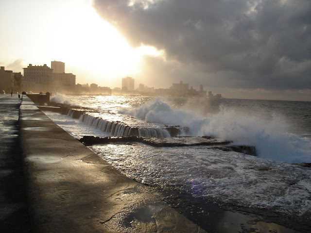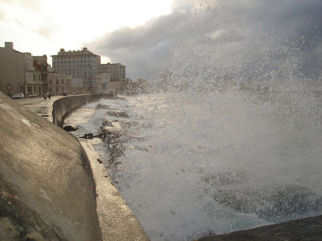 Mas tarde cogemos un taxi y por el malecón donde hay unas olas gigantes que saltan el muro, empiezan a caer encima del taxi, increíble una sensación increíble que te caigan olas encima de un vehiculo, me encantaría abrir la ventanilla para sacar unas fotos pero si lo hago el taxista me mata, el no parece tan encantado como yo, con la experiencia, …claro el taxi es suyo.