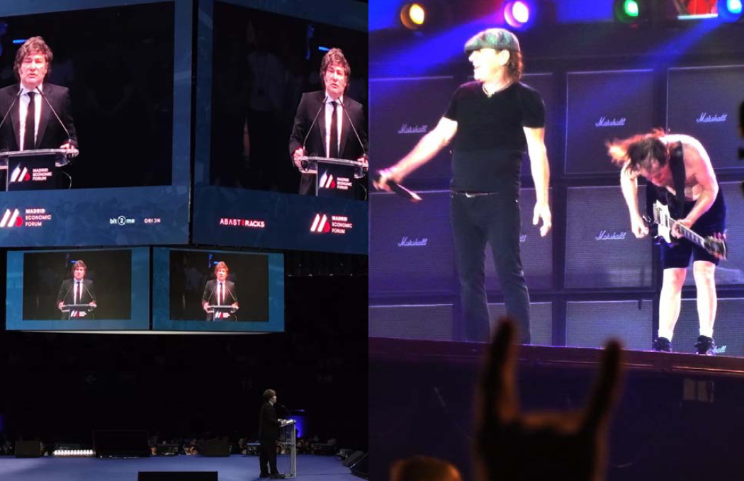 Al igual que Angus Young con la guitarra, Milei se formó en economía antes de dar el salto a la escena pública. Y ambos tienen unos referentes constantes: Angus a Chuck Berry y otros clásicos del rock primigenio y Milei a Adam Smith y otros autores del pensamiento liberal. Dos fórmulas clásicas que han funcionado desde el principio y que ambos defienden con convicción y vehemencia.