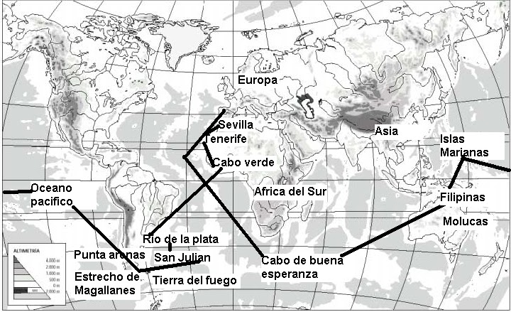 El inmenso océano que se extendía al oeste del continente americano llegaba hasta Asia,pero antes se situaba la línea de demarcación entre las posesiones españolas y las portuguesas.Y si Portugal pudo justificar su posesión del Brasil,lo corona española, a cambio, se quedó con las islas Filipinas.